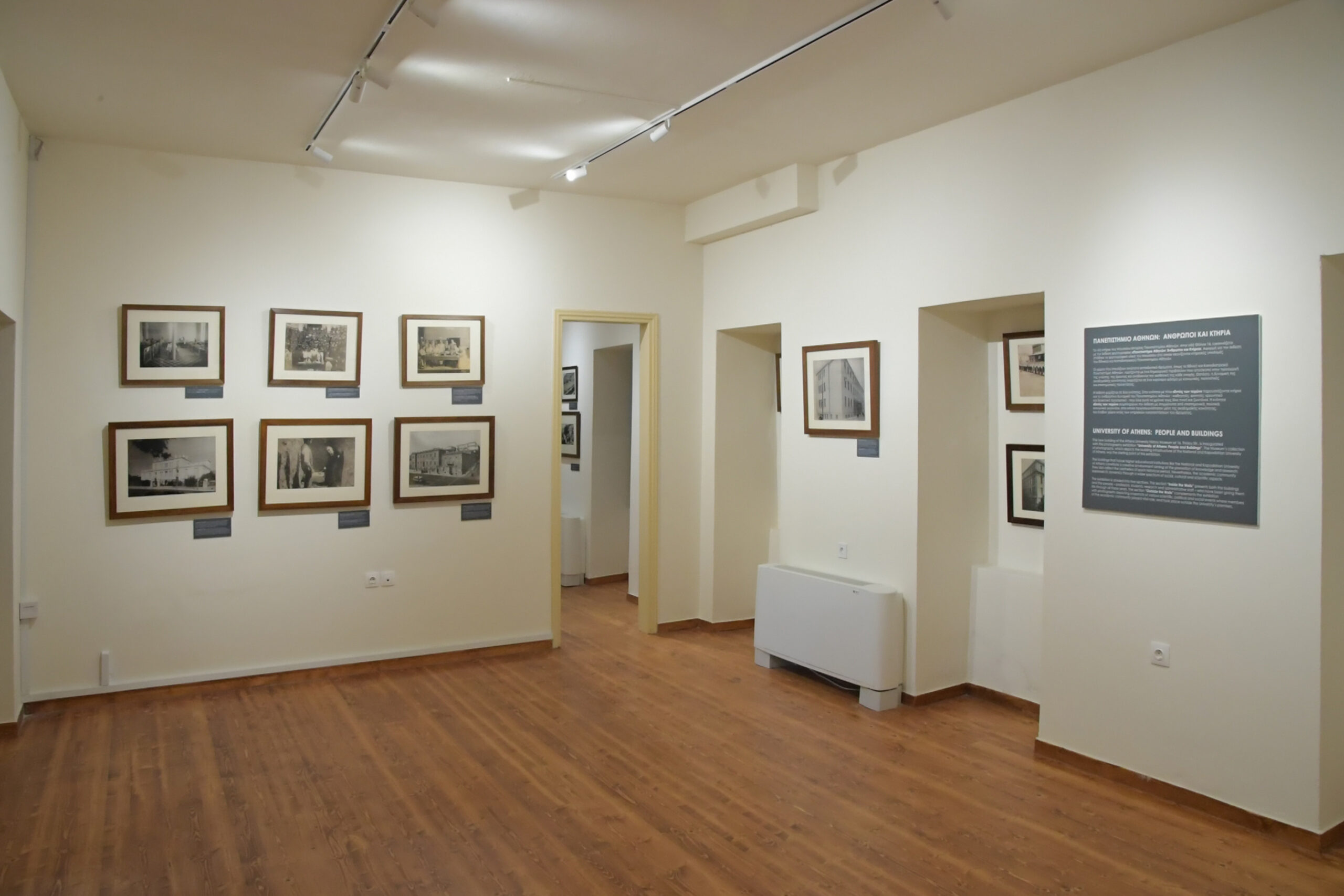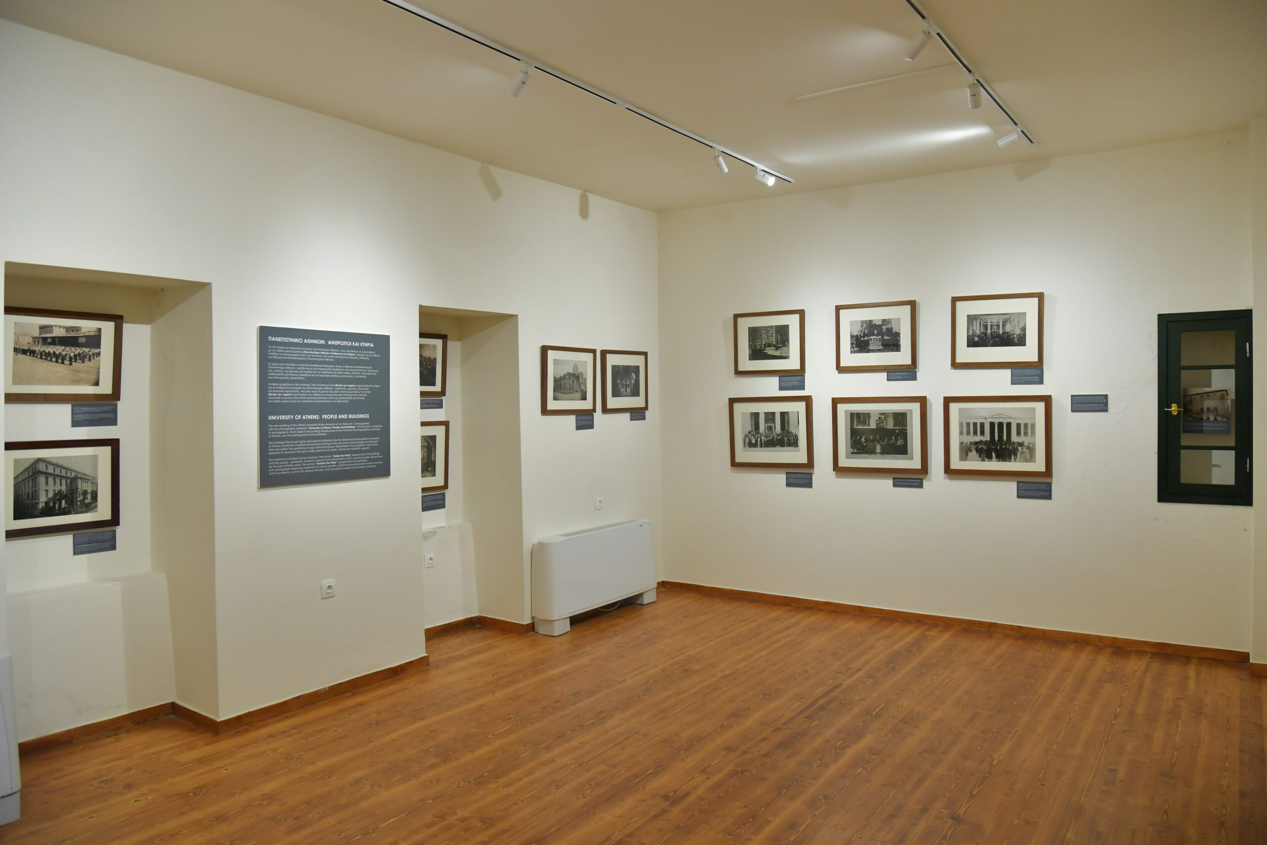 Στο ισόγειο δημιουργήθηκε η έκθεση «Πανεπιστήμιο Αθηνών: Άνθρωποι και Κτήρια» στις δύο αίθουσες με σπάνιο φωτογραφικό υλικό από τις συλλογές του Μουσείου, όπου απεικονίζονται κτήρια του Ε.Κ.Π.Α.